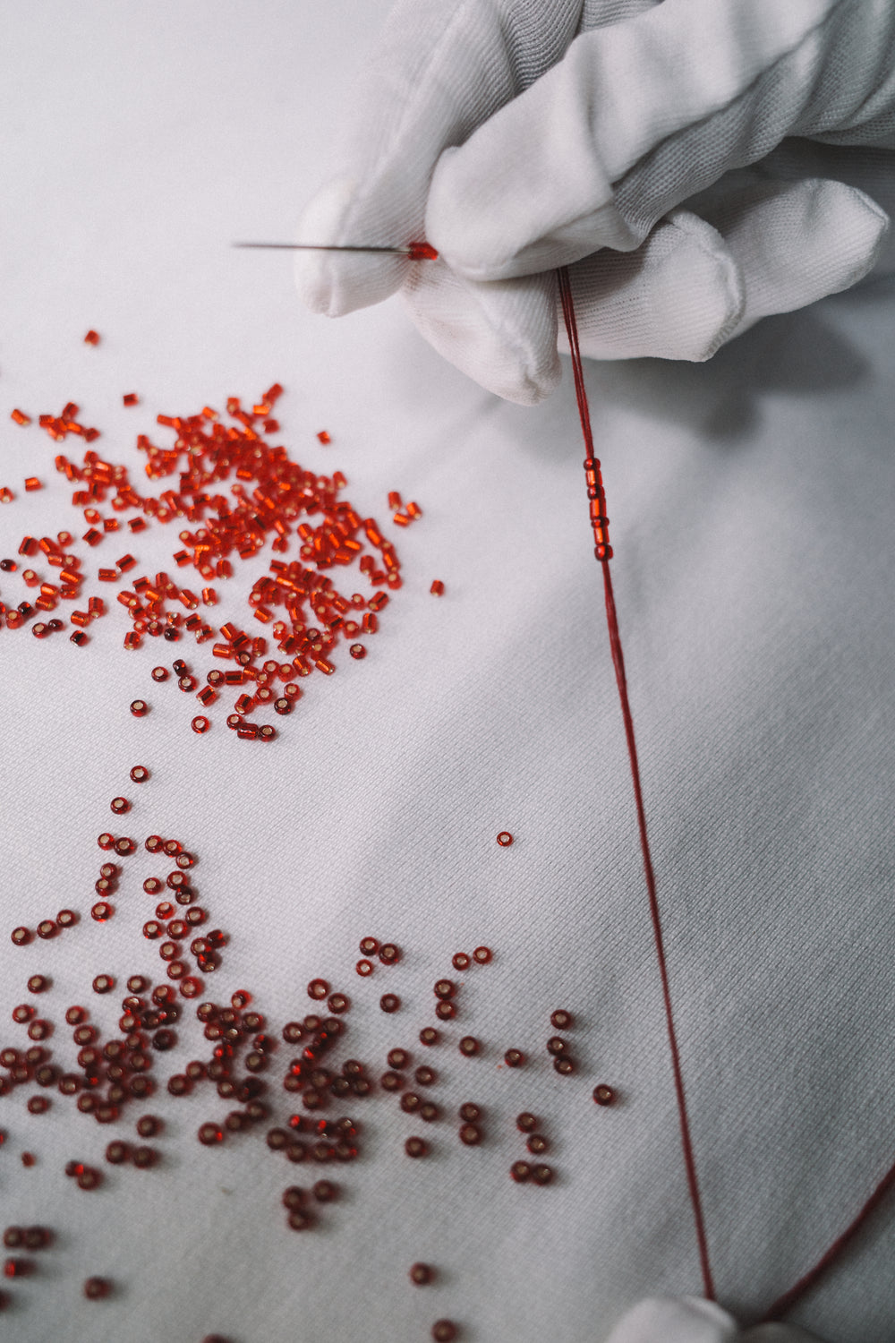 XENXEN 제품의 많은 디테일은 전통적으로 예복이나 고급 장신구에 사용되던 수작업 비즈 장식과 마감 기법을 통해 완성됩니다. 저희는 장인 정신이 깃든 공방들과 협력하는 것을 선호하는데, 이러한 기법들이 산업 생산으로는 재현할 수 없는 절제미, 정밀함, 그리고 소재에 대한 섬세한 감각을 가능하게 하기 때문입니다.